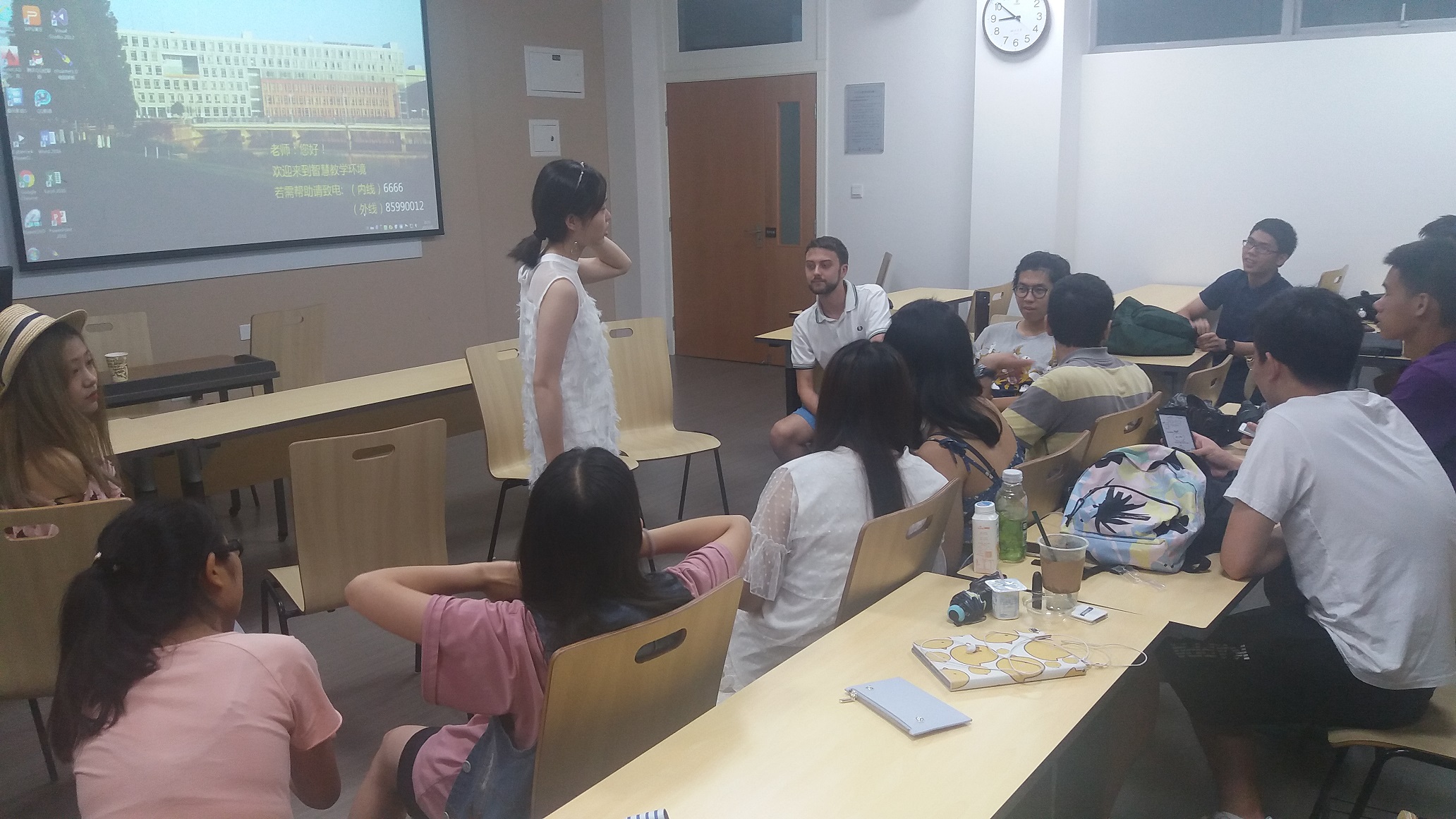 7月5日,ok138cn太阳集团“实践及国际课程周”太阳集团tyc9728“国际交流营”第二次文化交流活动在江安校区拉开序幕,有第一次文化交流活动作为铺垫,参与第二次文化交流活动的同学们相互之前已经有了一定的了解,活动在和谐愉快的氛围中顺利开展。本次活动的主要人员有:两名法国的学生,三名中国科学技术大学的学生,以及若干来自ok138cn太阳集团,太阳集团tyc9728,44118太阳成城集团的本科生。本次活动的主题为“中国科技大学校园文化展示”。中国科学技术大学的同学们向我们展示了作为一所以前沿科学和高新技术为主、兼有特色管理和人文学科的综合性全国重点大学的学生的风采。