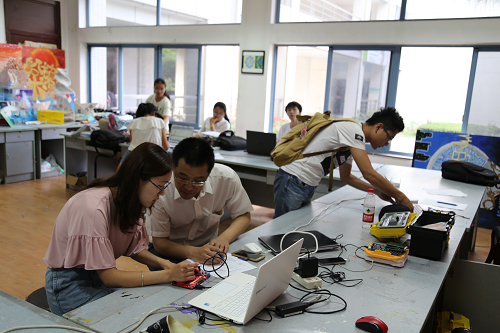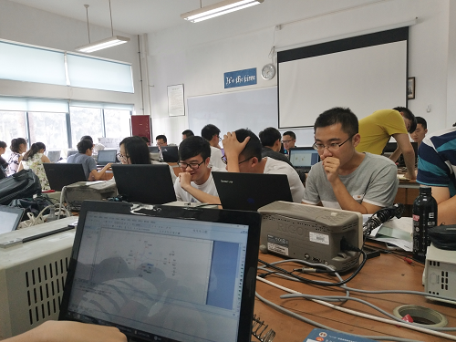 本次选拔赛于2017年5月13日上午8点在望江校区创新实验室正式拉开帷幕,望江校区的选拔测试是面向大三学生,并在下午一点在江安校区创新实验室进行另外一场面向大二学生的选拔测试。从比赛开始到结束评委们忙碌了整整一天,为每一个参加比赛的同学认真分析,测试电路,答疑解惑。比赛赛场同学们或是认真思考,或是查阅资料,或是焊制电路板,或是与老师交流,秩序井然。下午7点左右整个选拔赛落下了帷幕,评委们一起离开了比赛赛场,并且边走边谈论着比赛的情况。参加比赛的同学,简单的整理设备,清洁赛场后也陆续离开,选拔赛完美结束。