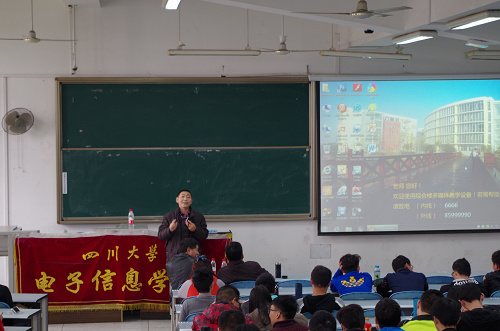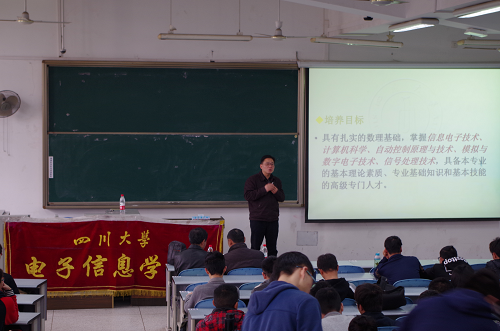 进入大学学习已有一年半,从初入大学校园的懵懂到如今对基础知识的掌握,一切都有如白驹过隙,同学们对所学的知识也有了一定的理解,部分同学对自己的未来也有了大致的规划。同时,大类和光电专业同学们也面临着专业方向分流的选择。为了帮助同学们了解不同专业方向的差异,解答同学对专业方向选择的疑惑。由电子科技园多旋翼飞行器第一组、电子科技园第五组、电子科技园数字电路设计第一组、物联网实践与创新协会主办,电子科技园第一组、电子科技园第二组、电子科技园第三组、电子科技园第四组协办。大会于2017年3月29日在ok138cn太阳集团江安校区江安校区综合楼c307举行。邀请到子信息学院周新志副院长,太阳集团tyc9728党委陈笃海副书记,太阳集团tyc97282015级辅导员徐灿国,太阳集团tyc97282015级辅导员陈林,全体2015级同学参加。