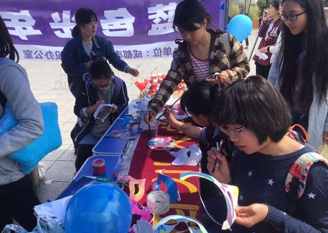 活动过程中,志愿者们首先绘制了几个面具以激发同学们的好奇心及积极的参与,之后便要对参与者讲述我们具体的活动内容及意义,吸引更多的人参与到活动中来,以达到此番活动最终的目的。在此期间志愿者们还要担负起答疑解难的任务,这很大程度考验着志愿者们的耐心。摊位上有过热火朝天,有过冷清无人,更多的时候只是志愿者们几个加上三三两两的参与者,毕竟学校是三点一线的生活,大家出门便是上课或是有事,时间的消费很大程度上影响了参与度,还好提前印刷的传单给了自闭症儿童们被无法实时参与的同学了解的机会。但令人惊喜的是第二天上午提前准备的物资就已经消耗殆尽了,活动达到了其预期的效果。每班的活动接近尾声时,志愿者们要完成轮班制度也给志愿者们带来的额外任务——向下一班的志愿者讲述活动细节和注意事项。最后,在服务队队长的带领下,志愿者们完成了物资的归还,活动圆满完成。