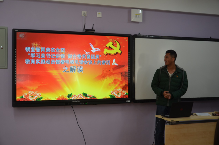 上午十点,活动准时开始,全体人员奏唱了团歌后,开始学习此次的理论材料。大家都仔细阅读了理论材料后,六班团支书作为代表简要概述了学习内容。随后,王崇伟同学仔细讲解了本次理论学习材料。他的PPT内容详实,讲解贴合主题,使在座的同学都对本次理论学习材料有了清晰而深刻的了解。接着,进入了吐槽“树洞”与规划分享的环节。团支书们都敞开了心扉,说出了心中的困惑与苦恼,也表达出了对未来的踌躇满志。这个环节为团支书们提供了一个发泄苦恼的平台,给了团支书们畅所欲言的机会,缓解了他们的精神压力。最后,进入了游戏环节,同学们自由选择了提前安排好的几个小游戏,玩得不亦乐乎。活动现场反响十分热烈,大家都积极地投身游戏之中,增进了互相之间的感情。