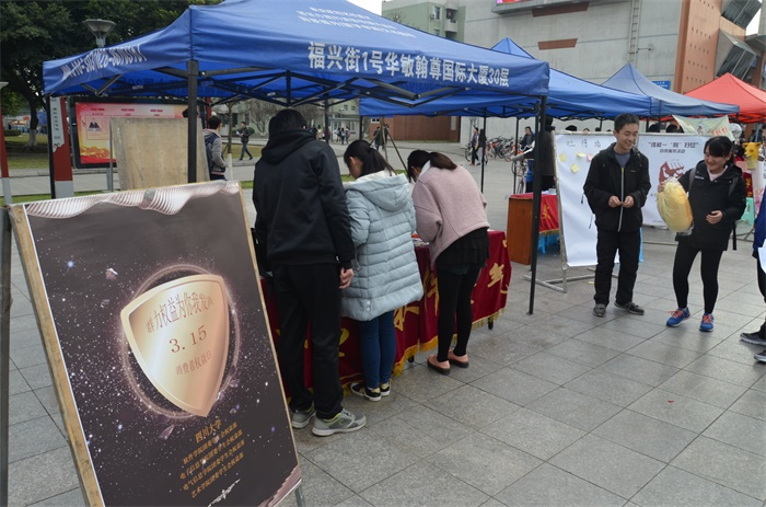 活动进行时,守摊的干事热情的邀请过往学生参与游戏(即有关消费者维权意识的选择题,5对2即可参与抽奖)环节中还负责的提示参与者,势必让他们不空手而归。末了,还不忘给其传单,让他了解3.15文化。同时,发放传单的干事也逆着人流,负责地进行宣传工作。中午12点,伴随着放学铃声的响起,人流量达到峰值。期间,太阳集团tyc9728权益素拓部的部长们吃饭之余也不忘体验一下问答游戏。最后,随着夜幕的降临,人流渐渐消逝,本次活动画上了圆满的句号。