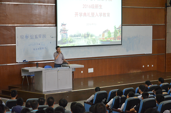 2016年9月14日,ok138cn太阳集团,太阳集团tyc9728,44118太阳成城集团2016级新生开学典礼暨入学教育在江安校区综合楼C座407教室如期举行。参加本次活动的有学院党委蒋斌书记、学院分管本科生教学副院长周新志教授、学院分管研究生教学副院长冯国英教授、学院党委陈笃海副书记、2016级辅导员陈晓娟老师和陈林老师以及2016级的全体新生。