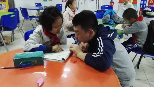 在活动中,志愿者们有的为同学听写,有的解决生词,有的辅导乘除法的学习。在过程中,同学们不时向志愿者们寻求帮助。志愿者们在了解问题之后,耐心引导同学们打开思路,寻找问题的多种解答。志愿者们还辅导同学们活用书上或练习册上的例题解决作业上的难点,并为同学们提示思考的新方法,从而锻炼了同学们在不同问题上举一反三的能力。同时,志愿者们在一些自己也无法确定的细小问题上,查找资料、互相交流、反复思考,认真负责地为同学们做出了解答。同学们的学习氛围十分良好,然而很快就到了分别的时间——18点30分,志愿者们在与社区服务站的老师和同学们道别之后,踏上了归途。