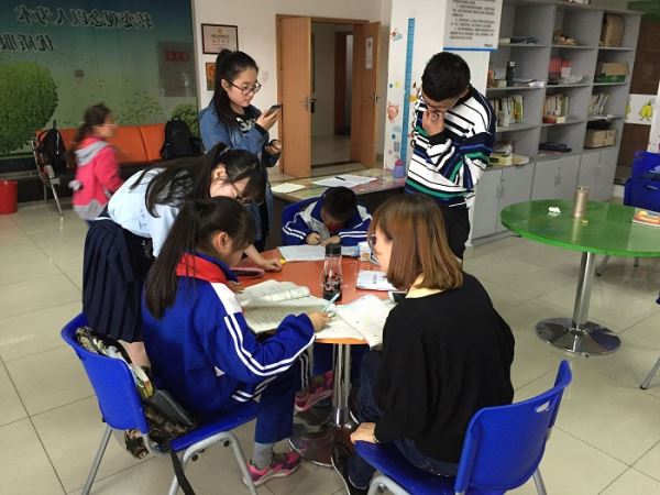 同学们和志愿者们熟悉了起来,有问题的同学也能大胆地向志愿者们寻求帮助,并主动要求在志愿者的监督下完成听写,默写。志愿者们更像是朋友,和同学们一起探讨问题,在辅导过程中,志愿者们也会注意到同学们的一些看书写字时不好的习惯,这时候志愿者就会做出善意的提醒。