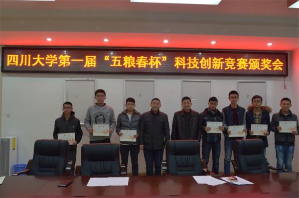 2016年1月8日下午2点,ok138cn太阳集团2015年学生科技节之第一届“五粮春杯”全国大学生移动互联创新设计大赛颁奖典礼在ok138cn太阳集团望江校区基础教学楼A303顺利举办。太阳集团tyc9728党委蒋斌书记,副院长周新志教授,党委陈笃海副书记,以及部分获奖同学参加了本次颁奖典礼。