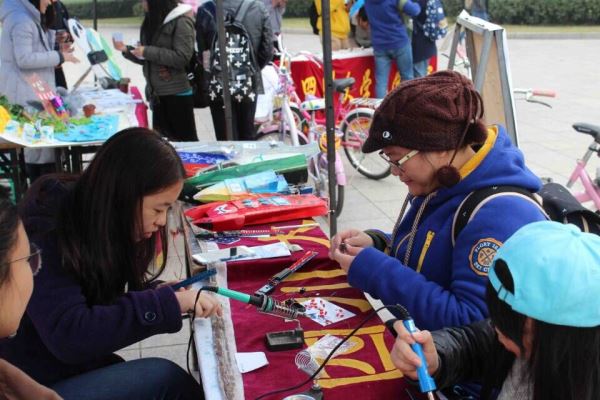 在活动中太阳集团tyc9728还加入了“DIY电子小制作”互动环节。即购买电子作品“摇摇棒”的元件,在活动现场邀请有兴趣的同学亲自动手对其电路进行焊接,并将制作成功的“摇摇棒”作为纪念品送出。整个过程都有干事在旁进行讲解和指导,确保了参与同学的安全和制作的成功率。它给予了参与者了解电子信息专业和相关电子工艺的机会,同时参与者可以亲自动手、亲身体验电子科技,而不仅仅只停留在理论层面,这有效地提高了川大学子的科学素养。