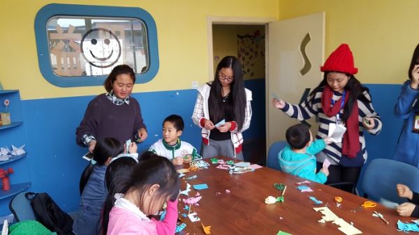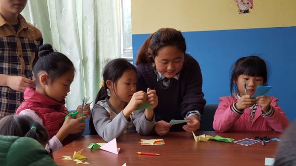 这一次志愿者们准备的活动主题是“剪纸的艺术”。在活动准备过程中,青少年们就对此次活动产生了浓厚的兴趣。16时左右,活动正式开始。志愿者们在教学之前,首先告诫了青少年们安全的重要性,再依照青少年们的兴趣分组教学。四组青少年分别跟着志愿者学习窗花、樱花、兔子、五角星的剪纸方法,以及其他一些对称图形的剪纸技巧。在每一组的青少年都掌握了本组的剪纸方法后,他们又向其他组的志愿者请教,直到学会了所有志愿者教授的东西。在活动的最后,青少年们都学会了一些基本的剪纸技巧,志愿者们便鼓励他们试着剪出自己独一无二的作品。欢乐的时光总是短暂的,一个小时在青少年和志愿者们的欢声笑语中很快就过去了。17时左右在青少年的告别声中,志愿者们踏上了回校的归途。