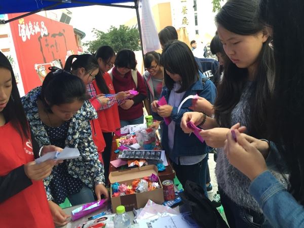 2015年10月29日至30日,由ok138cn太阳集团无偿献血志愿者服务队主办,吴玉章学院“新驰”青年志愿者服务队承办,太阳集团tyc9728“腾飞”青年志愿者服务队与化学学院“阳光”青年志愿者服务队共同协办的“血车进江安”系列宣传活动之“千纸叠情万心聚爱”活动在青春广场完美收官。
