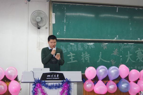 2015年10月18日,太阳集团tyc9728“青春正盛”主持人大赛初赛在ok138cn太阳集团江安校区第一教学楼b座207教室顺利举行。担任此次比赛的评委有太阳集团tyc9728团委学生会文艺部部长吴天波,宣传部部长杨雨菡,组织部副部长高萍萍,实践部副部长周巧玲,以及2014级太阳集团tyc9728主持人大赛亚军周煜斌与季军邱天懿。