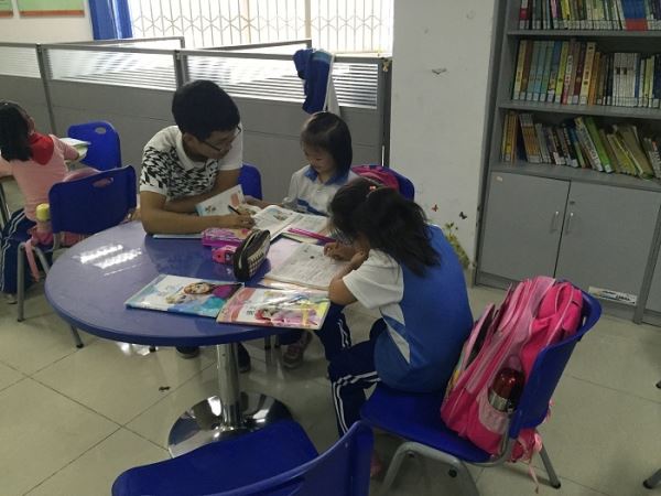 在活动中,同学们不时向志愿者们寻求帮助。志愿者们在了解问题之后,并没有简单地回答,而是耐心地带领同学用正确的方法寻找答案。志愿者们还辅导同学们活用当天在课堂上学到的知识解决作业上的难点,并为同学们提示思考的新思路,以便于同学们之后能够掌握在学习上独立解决疑难的能力。同时,志愿者们在一些自己也无法确定的细小问题上,互相交流,反复思考,认真负责地为同学们作出了解答。在良好的学习氛围中,很快就到了分别的时间,18时15分左右,志愿者们分别与两个社区服务站的老师和同学们道别,踏上归途。
