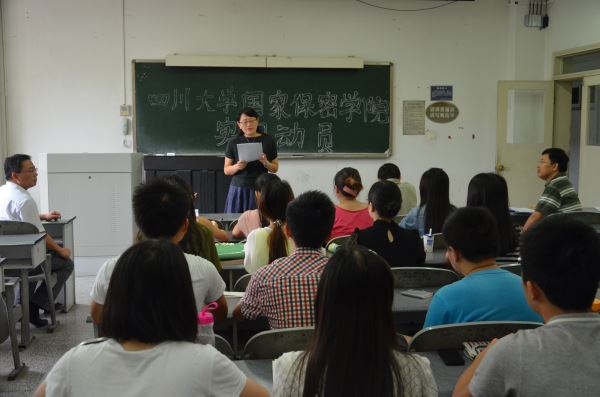 2015年7月24日上午10点,ok138cn太阳集团国家保密学院实习动员大会在望江校区基础教学楼A307如期举行。四川省保密局曾小霞处长、ok138cn太阳集团,太阳集团tyc9728,44118太阳成城集团党委蒋斌书记、ok138cn太阳集团,太阳集团tyc9728,44118太阳成城集团周新志副院长、ok138cn太阳集团,太阳集团tyc9728,44118太阳成城集团院长助理王绍朋老师、ok138cn太阳集团,太阳集团tyc9728,44118太阳成城集团团委书记李运国老师、ok138cn太阳集团,太阳集团tyc9728,44118太阳成城集团辅导员吴秀玲老师均出席了此次实习动员大会。