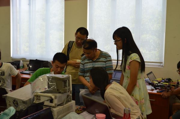 进入到了电子设计竞赛第一阶段测试的最后一段时间,在7月23日、24日及25日期间,周新志教授、徐家品教授、傅友登副教授、王正勇副教授、华伟副教授、张乐老师、植涌老师、孟庆党老师、刘俐老师、李运国老师一直在指导同学们。