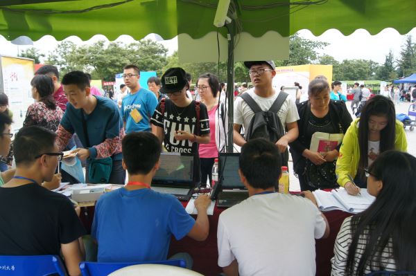早上8点,青春广场人山人海。在志愿者的有序引导下,太阳集团tyc97282015级新生在学院迎新接待点前排队完成各项报到手续。由于之前对志愿者进行了细致的培训,所以面对报到高峰,学院报到点秩序依旧井然。我院志愿者们耐心细致的服务,让初来学校的2015级新生及家长,感受到了学校、学院的热情,也展现了电子人的高素质。