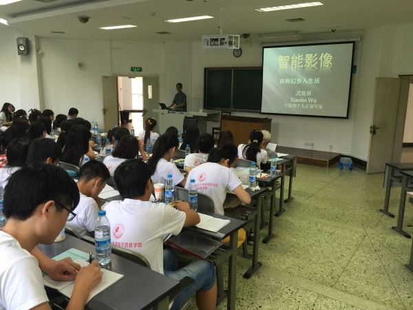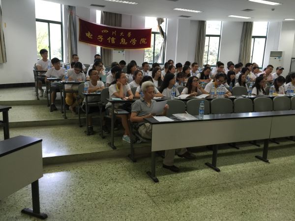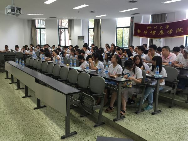 ok138cn太阳集团,太阳集团tyc9728,44118太阳成城集团2015夏令营专业讲座于2015年7月22日上午9:00时在ok138cn太阳集团研究生院1-102教室开始。学院信息安全专业方勇教授首先通过几个简单生活细节向参营的同学们展示了信息安全就在我们身边,然后简单介绍了信息安全专业的学习情况;电磁场与无线电专业刘长军教授从电磁场的原理和应用以及电磁场与微波和无线电两个专业的学习生活情况做了详细的介绍;武筱林教授生动形象的将图像处理的简单方法和应用展示给大家,并且介绍了图像处理的发展现状和未来;讲座的最后,图像处理研究所的何小海教授就我院图像所研究的图像处理方向做了详细介绍,上午11:45讲座正式结束。