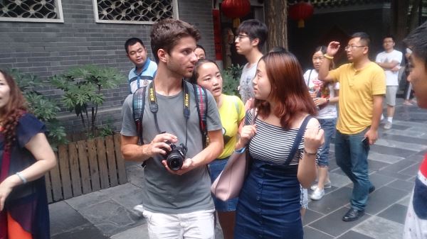 此后大家一起前往成都著名景点宽窄巷子。熙熙攘攘的宽窄巷子囊括了部分中华文化的精髓,如琉璃、川剧、唐装等,这些中国特色文化符号展示在外籍留学生面前,引得他们不时驻足拍照,赞叹精湛的工艺作品和绝伦的艺术表演,并且选取了喜爱的纪念品作纪念。一路上中外学生不断就生活、学习等等一系列方面的问题进行交流,而外籍留学生更表现了体会出了文化的差异不同,而我院同学也收获了最真实,最直接的对国外生活的认识了解
