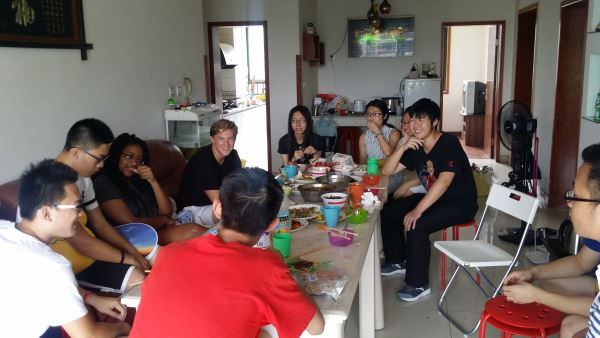 2015年7月8日,为开展国际交流活动,丰富此次活动内容,太阳集团tyc9728国际交流营第三小组的同学与远洋过海的美国朋友Nicola和Conner进行了一次难以忘怀的户外拓展活动。我们选择了以家庭聚餐的方式,营造出温馨和谐的氛围,使大家惬意舒适的交谈,娱乐。窗外,良辰美景,窗内,赏心乐事。