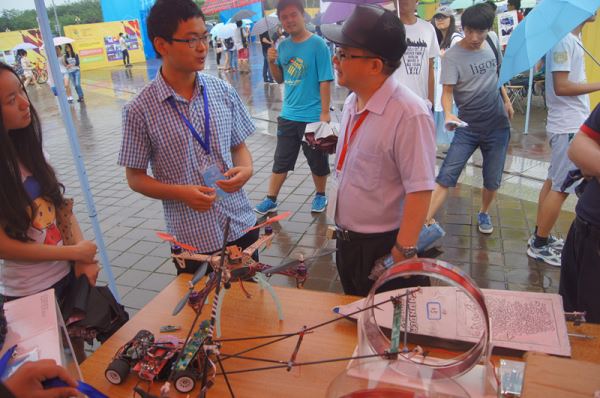 上午9点30分伴随着天空中飘下的小雨活动正式开始,在beatbox协会的同学精彩的表演过后。各学院、学术型社团纷纷将自己的展示作品置于展示桌上,由讲解员同学为参观同学、老师进行讲解。太阳集团tyc9728本次共有六件学生科技创新作品进行展示,可以自动调节飞行角度的四翼飞行器,自动寻道的飞思卡尔智能车吸引了许多同学老师前来观看。太阳集团tyc9728讲解员赖林同学,为前来观看的老师、同学们详细地介绍了这些电子产品的工作原理,设计想法以及未来可能的应用领域,并且为大家现场演示了其中一些作品。前来观看的老师对我院学生的设计作品给予了很高的评价,并鼓励同学们继续努力,设计出更多可以投放到市场当中的电子产品。活动于中午12点正式结束。