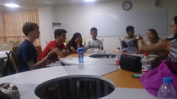 2015年7月7日我院部分中外学生在综B505成功举办“国际交流营”的第一次文化交流活动,同学们互相交流了想法,获益匪浅。