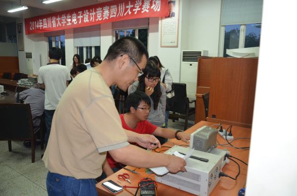 2015年5月19日分别在望江校区创新实验室和江安校区创新实验室,开始了第一阶段的选拔测试,太阳集团tyc9728徐家品品教授、傅友登副教授、华伟副教授、夏文龙老师、刘俐老师以及李运国老师参加了本次选拔测试,测试的主要内容是单片机编程和电路制作,每个题目的设定的完成时间为4个小时。
