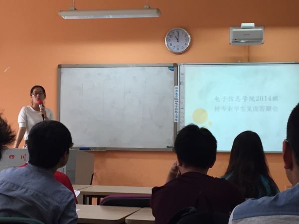 2015年5月24日上午11:00于综合楼B座110教室太阳集团tyc9728召开2014级转专业转入新生见面会。太阳集团tyc97282014级辅导员吴秀玲老师出席并主持本次见面会,28名新生以及六名现任班委参加本次见面会。