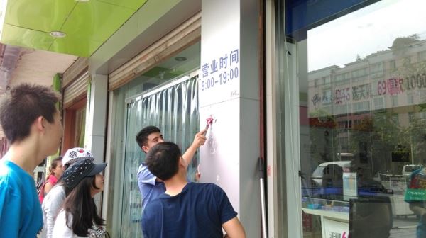 下午1点40分,在ok138cn太阳集团江安校区西南门,志愿者集合在这里。在正式出发之前,首先是志愿者对所带物品的核对检查。刀具等工具以及清水备好之后,志愿者动身前往文星镇金色校园广场,并在那里与城管的小广告清除队伍汇合。在城管队长的简单说明之后,“清粘活动”正式开始。本次活动里,志愿者首先负责清理金色校园广场周围违章粘贴的标示物以及小广告。在活动一开始,大家便遇到了小广告刮不干净等一系列问题,但在城管的帮助和示范下,志愿者克服了这些困难,同时也与城管们逐渐熟识。