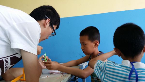 下午14点10分,志愿者们在ok138cn太阳集团江安校区青春广场集合出发前往青少年空间。在下午14点40分,志愿者们到达青少年空间,之后开始招募青少年们参加这次活动。15点整,活动正式开始。志愿者先给青少年们简单讲解机器人的工作原理,之后青少年们在志愿者的辅助下开始组装小机器人。在组装机器人的过程中,虽然小朋友们遇到越来越多的困难,但是他们仍坚持着积极地自我探索。然而在自己实在不能完成的时候,他们也会坦然地向志愿者寻求帮助。志愿者们耐心地给他们讲解,而当遇到比较困难的问题时,志愿者们先是相互讨论,寻找原因,然后再认真地教小朋友们一起解决问题。最终,在志愿者的帮助下,小朋友们一个接一个的完成了小机器人的组装。在下午16点,活动正式结束。