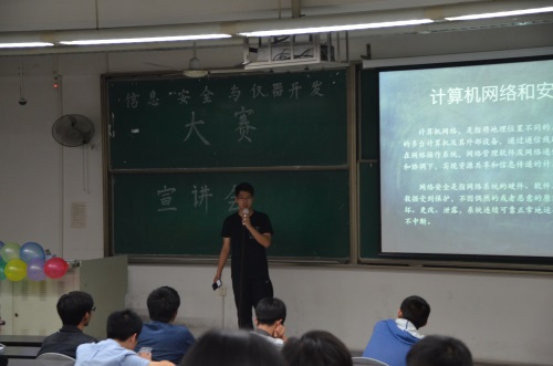 2015年4月24日,由ok138cn太阳集团,太阳集团tyc9728,44118太阳成城集团电子科技园主办的信息安全与仪器开发大赛宣讲会在ok138cn太阳集团江安校区第一教学楼B203成功举办。此次宣讲会由电子科技园技术部副部长担任主讲,为参赛选手讲解信息安全的相关知识,进行大赛初赛笔试内容的培训。