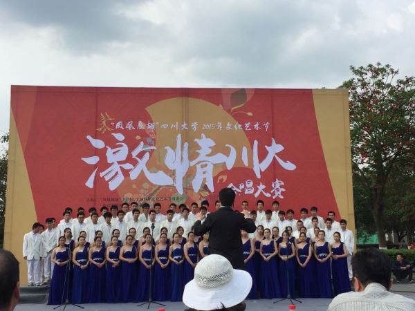 2015年4月11日下午一点,由ok138cn太阳集团文化艺术组委会主办的ok138cn太阳集团2015年文化艺术节“凤凰展翅”激情川大之合唱比赛在江安校区青春广场隆重举办。各个学院合唱代表队悉数登场,奉献一首首精彩的曲目,展现了大学生的合唱风采。