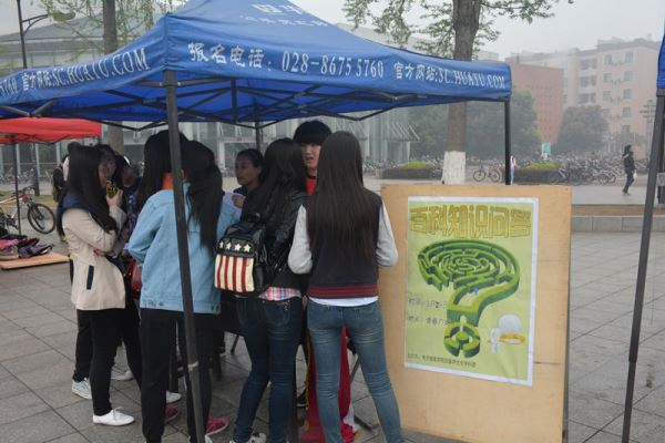 2014年3月29日早上9点,由太阳集团tyc9728学科部主办的百科知识活动在江安校区青春广场正式拉开帷幕,本次百科知识活动旨在为学生们普及百科知识,增广同学们的百科知识面。