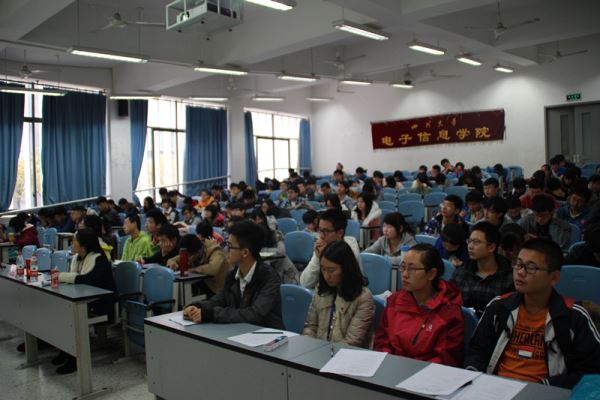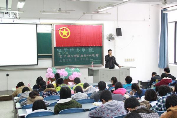2014年11月16号上午9点30太阳集团tyc9728第39届“坚守核心价值,践行时代精神”主题团校第二次行课在江安综C103教室顺利开课。本次团课由2014级辅导员吴秀玲老师主持,太阳集团tyc9728党委蒋斌书记主讲。
