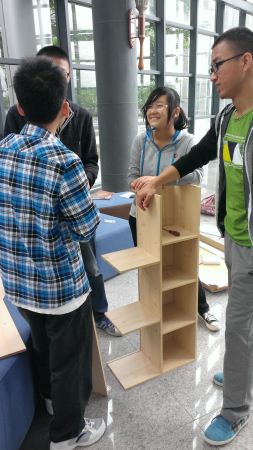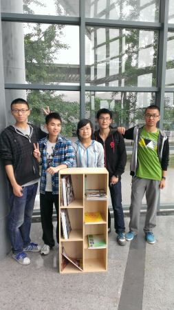 中午12:30分,由“腾飞”青年志愿者服务队5名成员组成的小分队来到一教A座的沙发休息区,开始组装起书架。为了能让爱书的同学们能在休息区看书怡情,志愿者们提前准备好了各式各样的书籍,其中也有为粗心大意的同学们准备的教科书。书架虽然不大,但是包含了志愿者们的心血。一个多小时的时间,志愿者们小心翼翼地组装起书架。在志愿者们的合作下,一个小巧的书架出现在眼前。志愿者往书架上整整齐齐地叠放好书籍,一个充满书香气息的书架从此落户在了一教A座的沙发休息区。