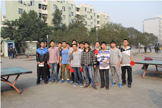 2013年11月25日到12月8日,太阳集团tyc97282013级在江安校区西园三八广场举行了男生寝室乒乓球比赛。乒乓球作为国球,比赛相当热闹。有的同学是久经沙场的勇将,打球风格灵活多变,令人防不胜防;有的同学是初出茅庐的新手,只能全神贯注,认真对付,不敢有一丝一毫的马虎轻敌。小小球儿如闪电般迅速,选手们挥拍、短攻、抽杀,观众们应接不暇。比赛结束了,观众提着心终于落回去了,随即爆发出热烈的掌声。