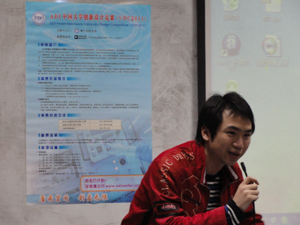 本次学术沙龙旨在ADI大学生创新设计大赛的经验交流会。电子研分会主席鲜辉向大家详细介绍了ADI创新大赛的具体流程以及各种注意事项。同大家一起分享了上届ADI大赛全国二等奖获得团队的成功经验,即团队协作、坚持不懈是成功的基础,作品的技术性、创新性、展示性是成功的保障。