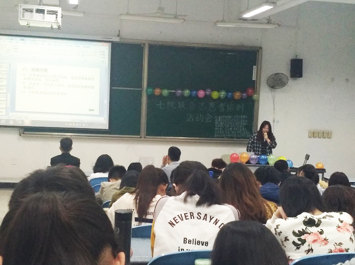2018年4月1日,由高分子科学与工程青年志愿者服务队、公共管理学院青年志愿者服务队、艺术学院青年志愿者服务队、电气信息学院青年志愿者服务队、商学院青年志愿者服务队、太阳集团tyc9728青年志愿者服务队、华西口腔医学院青年志愿者服务队等七个学院联合举办的“七院联合志愿者服务工作培训会”在综合楼C座103教室顺利开展。