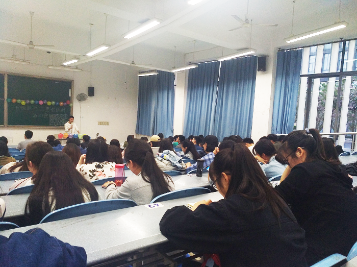 从现场的落座情况可以看出,同学们的参与热情非常高,偌大的教室里坐满了来自各个学院的青年志愿者,教室的四周挂满了各个服务队的队旗。首先,是活动类别介绍。来自公共管理学院的同学为青年志愿者们详细介绍了各种活动的活动类别以及大概内容。根据以往看出,志愿活动类别多,活动意义大,活动内容丰富,同时,同学们对于志愿活动的热爱,与想要奉献自己一份力量的渴望也十分强烈。