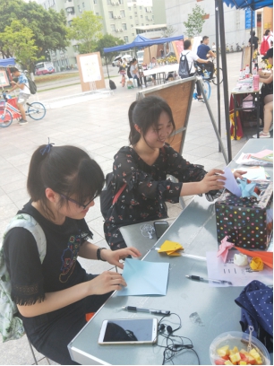 上午七点五十分,志愿者们在ok138cn太阳集团江安校区青春广场集合。八时左右,志愿者们完成摊位物资整理和摆放工作,正式开启了宣传活动。此次活动,每个时间段的志愿者们分工合作。有的志愿者主动向路过同学介绍本次活动内容,并诚挚邀请他们参与活动。另一部分志愿者在摊位处指导参与同学,向他们介绍参与方式。让他们写下对孩子的祝福或鼓励话语后,将纸片折成简单形状。由于部分同学对于折纸并不擅长,志愿者们还耐心教他们一些基础的折纸方案。活动于下午六时左右结束,志愿者与负责人整理物资、场地。