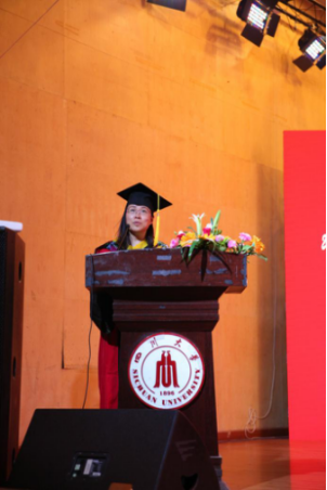 2018届博士毕业生张华作为学生代表发言,回顾在校的点滴生活和在学习科研上所取得的成绩,眷恋不舍之情溢于言表,同时代表毕业生同学向母校、学院领导以及辛勤培育他们的恩师们表达了最衷心的感谢和最崇高的敬意,对曾经同窗的同学们表达了最美好的祝愿,并向主席台导师献花。