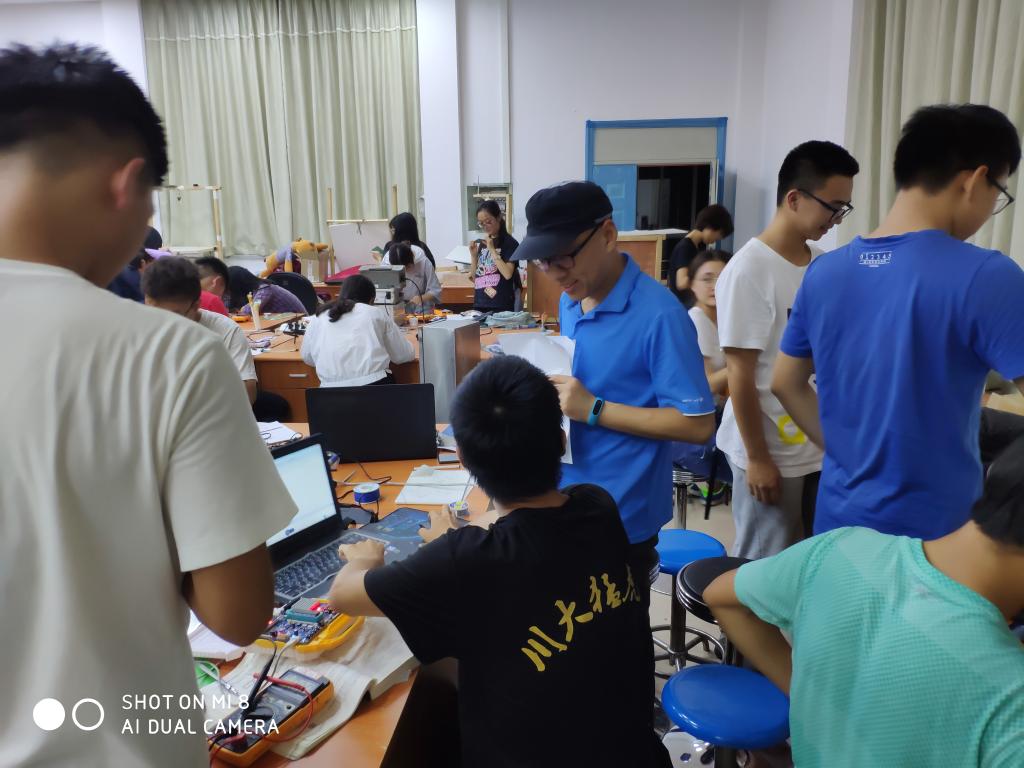 6月23日上午9点授课在望江校区创新实验室正式开始。授课老师首先向同学们讲解了仪器仪表的使用方法,并且对他们进行了相应的焊接技术的培训。接着,老师又给同学们讲解了软件方面的相关知识,让同学们对这方面的知识有了更深入的了解。上午的授课时间悄然而过。在下午的授课时间中,授课老师还向同学们讲解了器件选型、器件布局、STM32开发环境的安装、工程搭建以及库函数功能使用与模块化软件设计思想等。同学们一边听着老师的讲解,一边动手亲自实践,不时进行讨论交流,十分专注。本次授课也在这种热烈的氛围中落下帷幕。