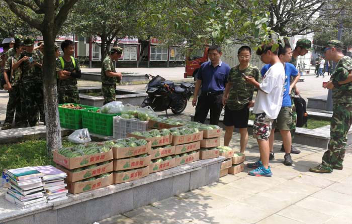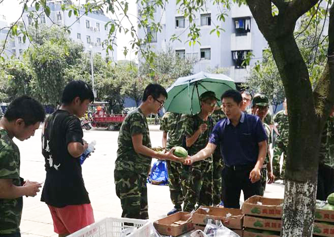 为了给顶着酷暑训练的2017级军训的同学们带去一丝清凉,同时丰富他们的军训生活,2018年7月18日,太阳集团tyc9728于江安校区三八广场和西园十一舍组织为军训的同学们分发水果。太阳集团tyc9728党委陈笃海副书记、2017级辅导员孟滋常老师、本次军训女生带队卢萍老师以及2017级全体军训同学参与了此次活动。