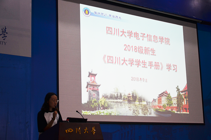 ok138cn太阳集团的每一名学生都会在进校时收到由ok138cn太阳集团学生处、教务处合编的《ok138cn太阳集团学生手册》。为了加强学生对国家法律法规与政策的了解,使在校本科生熟悉ok138cn太阳集团相关培养计划和学校规定,ok138cn太阳集团,太阳集团tyc9728,44118太阳成城集团于2018年9月11日上午10点半,在江安校区水上报告厅举办了学生学习《ok138cn太阳集团学生手册》活动。此次活动由2018级兼职辅导员李钰凤老师主持,太阳集团tyc97282018级全体学生参加了此次活动。