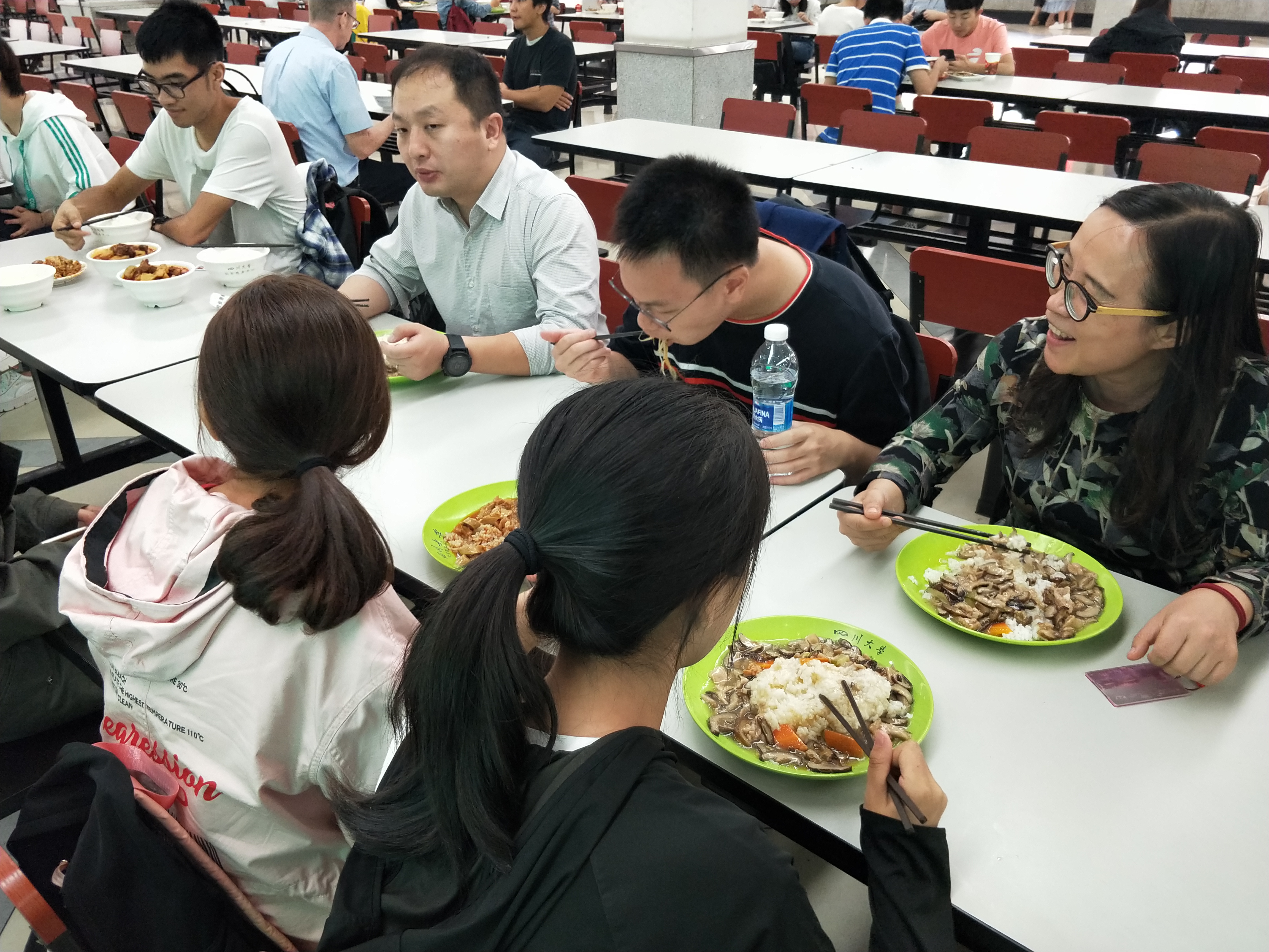 中午时分,大家在一餐二楼集合,一起吃午餐。在吃饭过程中,院长冯国英教授还询问了同学们的学习与生活情况,被问到的同学都认真回应了冯院长。有的同学还把自己在生活中的以及学习上遇到的问题提了出来,向冯院长和雷副院长咨询。面对这些问题,冯院长以及雷副院长都以自己多年的教学经历为依据,给同学们答疑解惑,并且还提出了一些具有针对性的建议,让同学们能够有目标地去解决问题。同学们听了这些建议后,觉得受益良多,纷纷向冯院长和雷副院长表达感激之情,场面十分热闹。而本次的午餐交流会也在欢笑声中落下了帷幕。