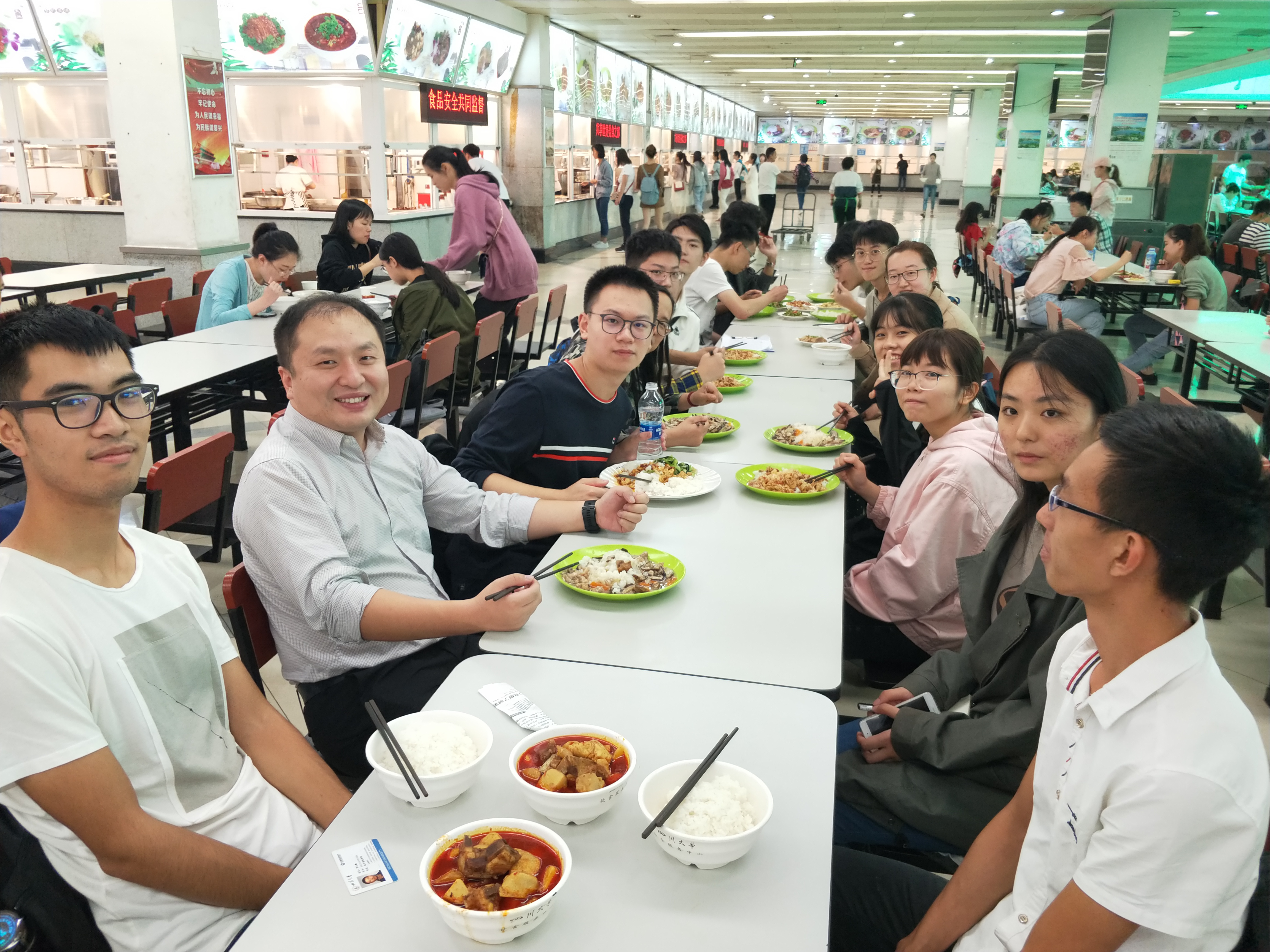 2018年9月11日中午12点,由太阳集团tyc9728举办的教授午餐交流会在ok138cn太阳集团江安校区西园一餐厅二楼举行。出席午餐交流会的有太阳集团tyc9728院长冯国英教授,副院长雷印杰副教授;2017级与2018级的部分同学参加了此次午餐交流会。
