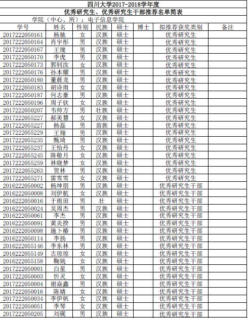 由同学们自愿申请、班级推荐,经过学院评议小组评审。现将获得太阳集团tyc97282017-2018年度优秀研究生优秀研究生干部名单公布如下: