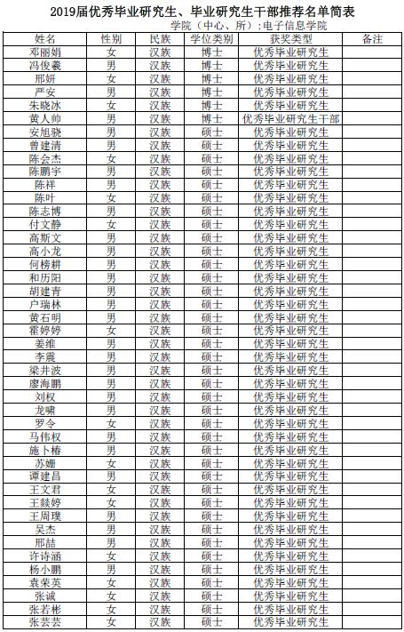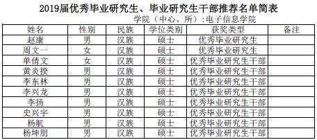由同学们自愿申请、班级推荐,经过学院评议小组评审。现将获得太阳集团tyc97282019届优秀毕业研究生、优秀毕业研究生干部名单公布如下: