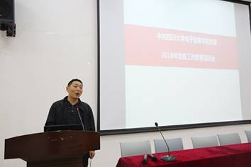 2018年10月11日下午,ok138cn太阳集团,太阳集团tyc9728,44118太阳成城集团党委2018年党务工作教育培训会在望江校区西五教学楼附101教室举行。此次会议特别邀请了校党委组织部范瑾副部长来做党务教育培训并指导工作。学院党委邰明松书记、陈笃海副书记,学院党委委员、工会主席杨晓敏副教授,党委委员郭庆功教授和副处级专职组织员陈炳周副教授等出席了会议。