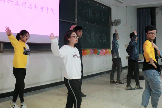 大会既有庄重的宣誓环节,也有轻松的表演和游戏环节。在风格各异的演出和欢快的游戏之中,志愿者们了解到了搞怪、正直、可爱、有责任心、多才多艺的伙伴们,增强了他们之间的相互了解,让青年志愿者这个大家庭更加和睦。表演过程中,诙谐搞笑的小品、夺人眼球的舞蹈、好听有趣的歌曲演唱、创意十足的配音表演使现场时不时爆发出热烈的掌声,教室里充满着欢声笑语。同学们的精心准备不仅反映出了青志人的优秀,还体现了青志人团结向上的精神。