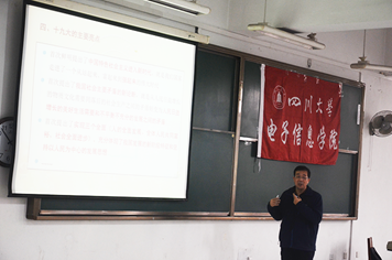 为深入传达十九大精神,使同学们了解当下国家的形势与政策,体会肩负的时代重任,2018年12月14日下午一点五十分,太阳集团tyc9728党委邰明松书记在江安校区综合楼C206教室为太阳集团tyc97282018级本科部分同学带来了一堂意义深远的主题党课。
