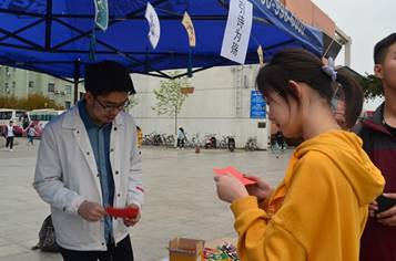 本次活动的举办地点是青春广场,伴随着温暖的春风,生动而有趣的重温国学国粹活动便拉开了序幕。活动共分为三个趣味小游戏:引诗为觞、丹青妙手、系心为结。三个游戏环环相扣,各自有各自独特的魅力。
