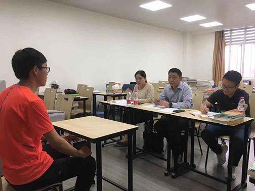 面试开始前,望江基础教学楼A座走廊上济济一堂,2019级学生以高素质的姿态安静且有秩序地等候着面试的开始。上午8:30,面试准时开始。卓越班面试分组进行,同学们寻找到对应的教室参与面试。首先,是一分钟的自我介绍,面试者胸有成竹,将自己最好的一面完美地展现出来。接着,根据面试者的自我介绍及卓越班的特点进行了提问,多数面试者对答如流,赢得面试官的赞许。接着,根据卓越班英语要求高的特点,面试专家与面试者进行了一段英语对话,以测试面试者的专业能力。中午12:00,面试圆满完成。